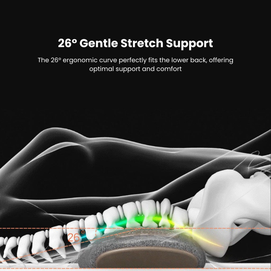 • The pillow features a 26° ergonomic curve to fit the lower back perfectly, supporting the spine and reducing gaps while lying down.