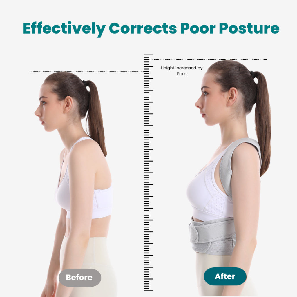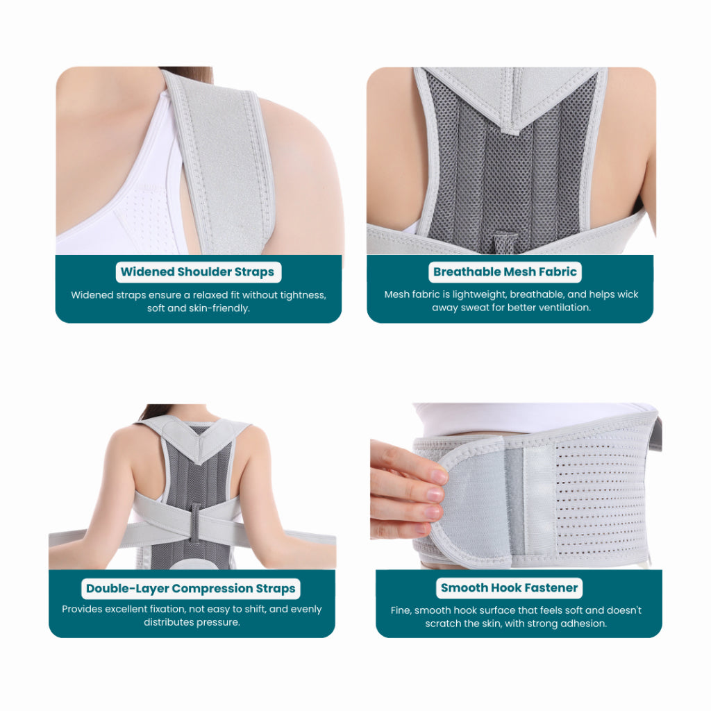 โข Realigns the spine and shoulders to help reduce hunchback and promote upright posture.